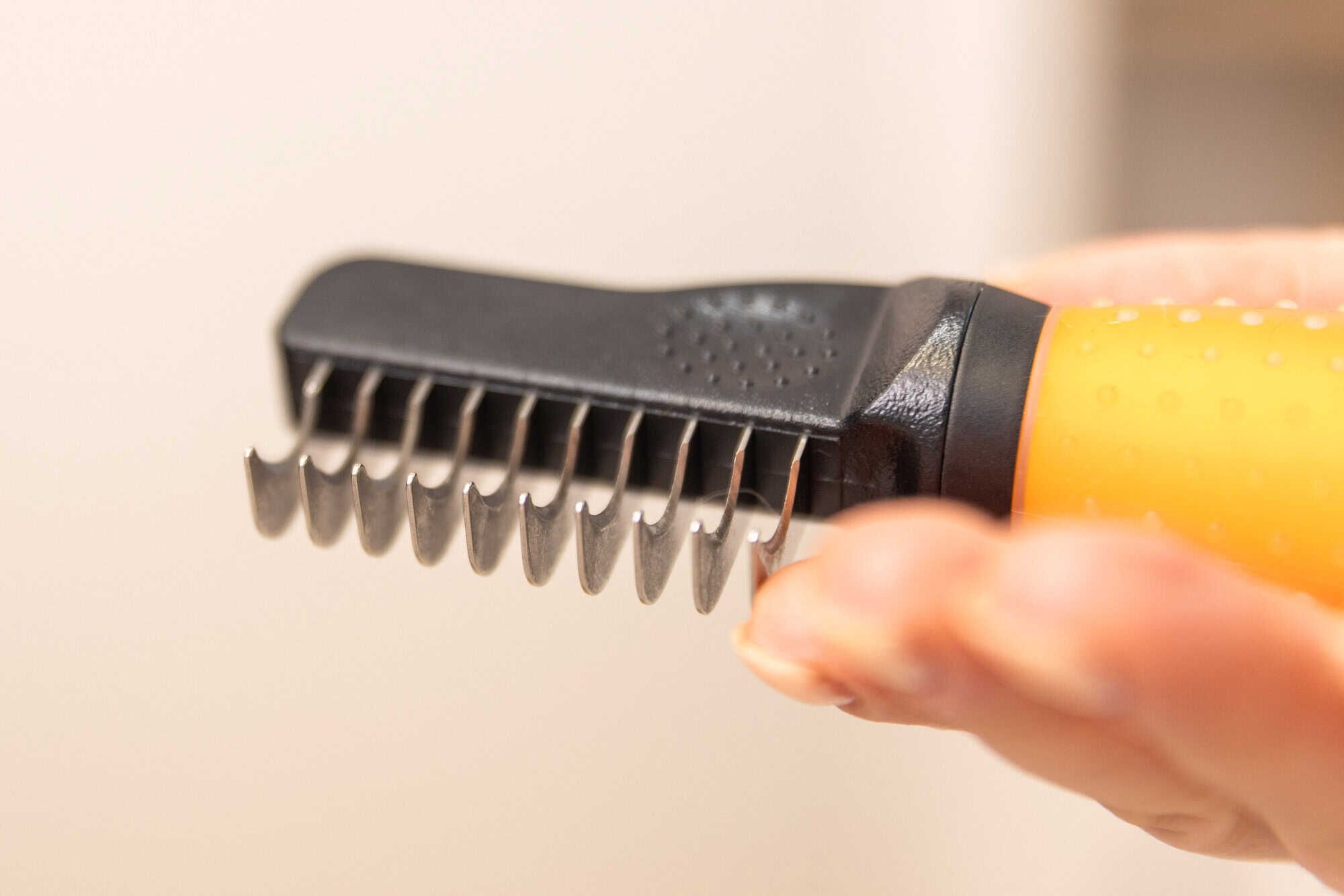 Dank der speziell geformten Klingen aus rostfreiem Edelstahl kannst du das Fell nicht nur entwirren, sondern gleichzeitig die Fellstruktur nachhaltig verbessern und gesund glänzen lassen. Die Klingen gleiten präzise durch die Verfilzungen, während das gesunde Deckhaar geschont wird.
