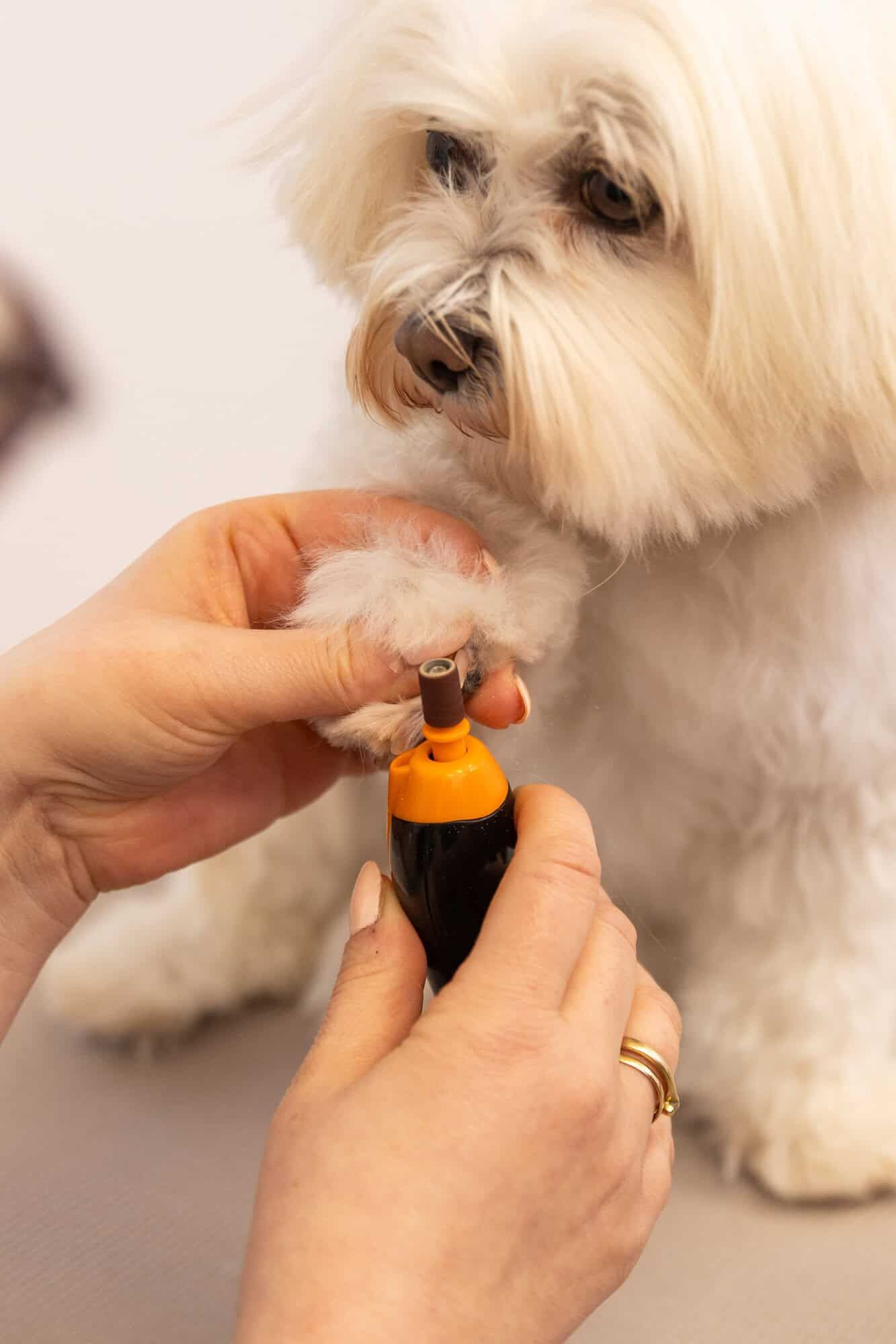 Dank der zwei Geschwindigkeitsstufen und der verschiedenen Schleifaufsätze lassen sich auch kräftige Krallen kontrolliert kürzen.