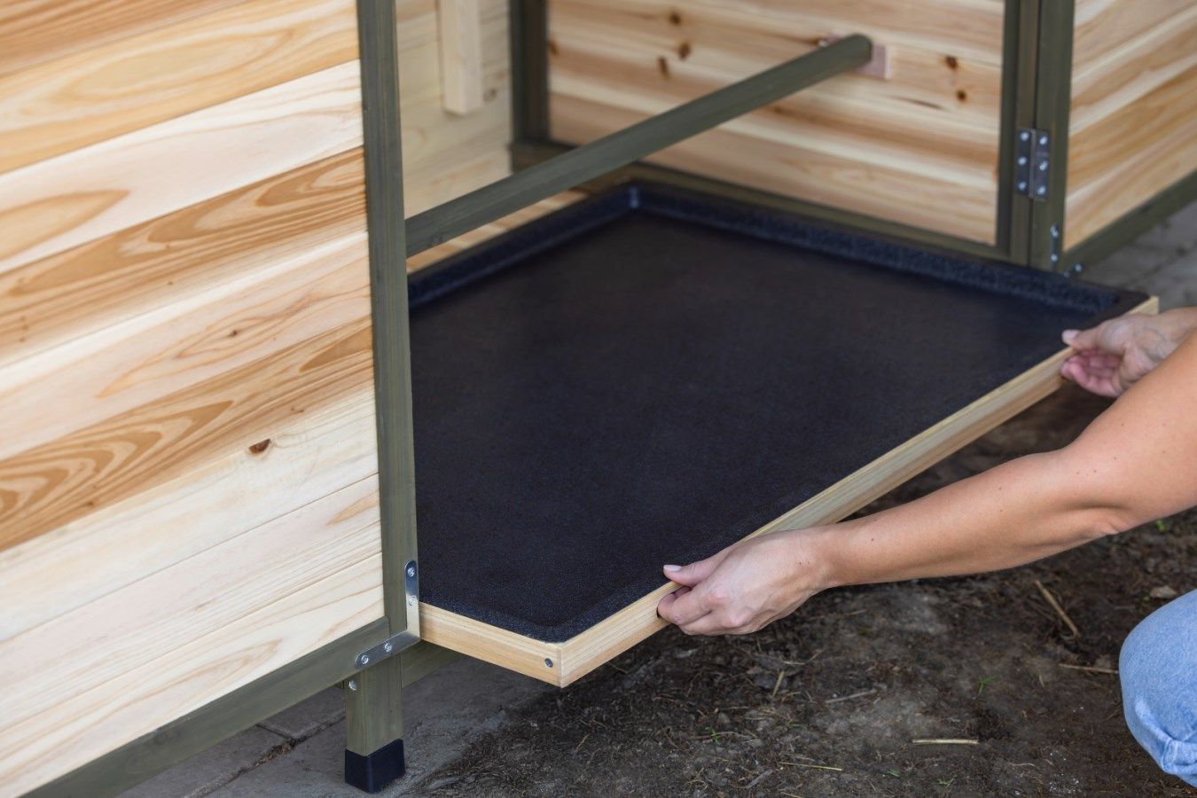 Auch die Instandhaltung ist für dich absolut stressfrei: Die gesamte Frontseite lässt sich über eine Doppeltür komplett öffnen, was zusammen mit der ausziehbaren Kotwanne eine effiziente und zeitsparende Reinigung ermöglicht. So sorgst du ohne großen Aufwand für die nötige Hygiene, damit deine Hühnerschar gesund und munter bleibt.