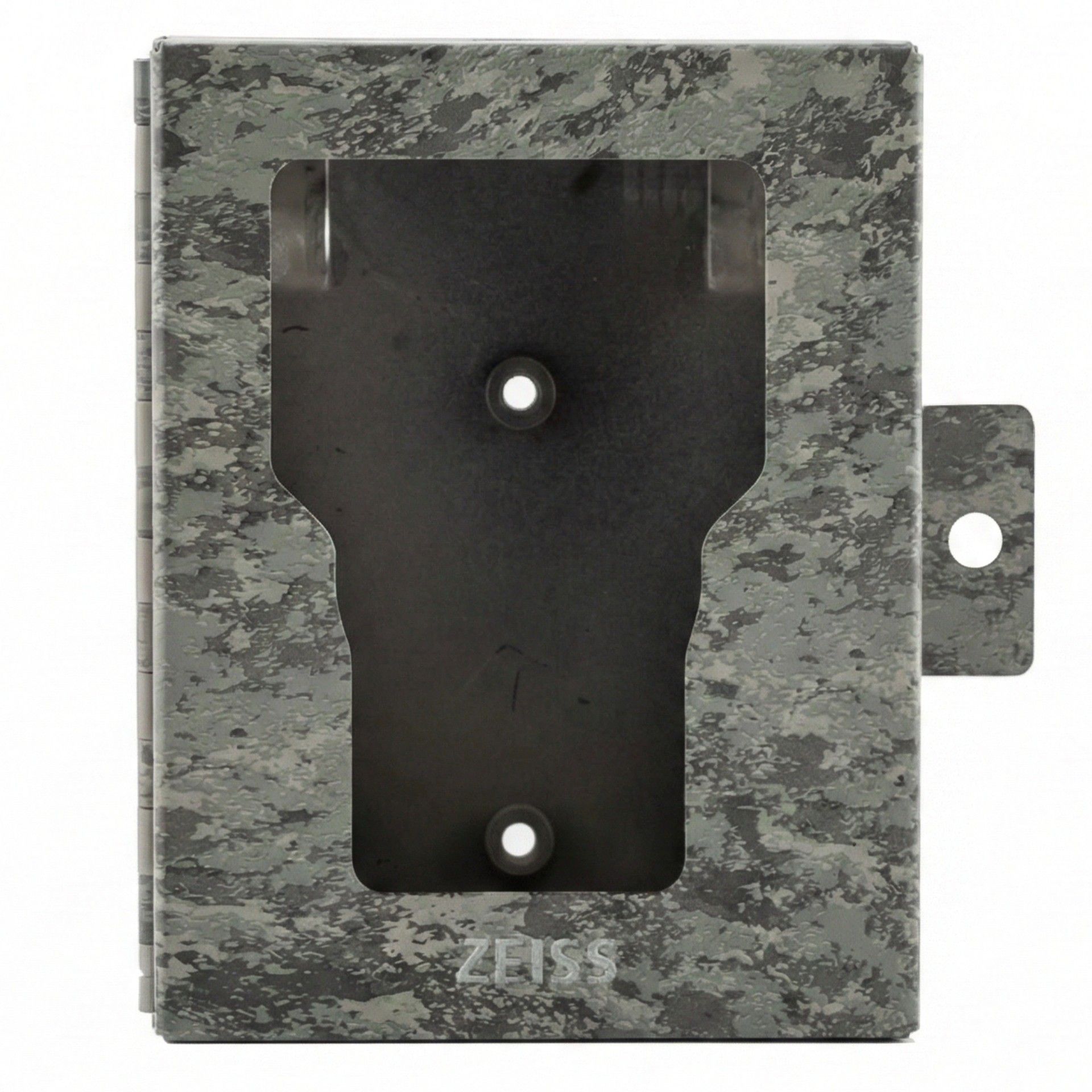 Schütze deine ZEISS Secacam 1 effektiv mit dem robusten Metallgehäuse aus hochwertigem Stahl. Es umschließt die Kamera vollständig und bietet durch passgenaue Aussparungen für Objektiv, Sensor und das Black-LED-Feld uneingeschränkte Aufnahmequalität. Das Tarnmuster sorgt dafür, dass die Kamera in der Natur unauffällig bleibt, während der Abstand zwischen Kamera und Gehäuse die Stoßfestigkeit und den Schutz vor Vandalismus erhöht.
