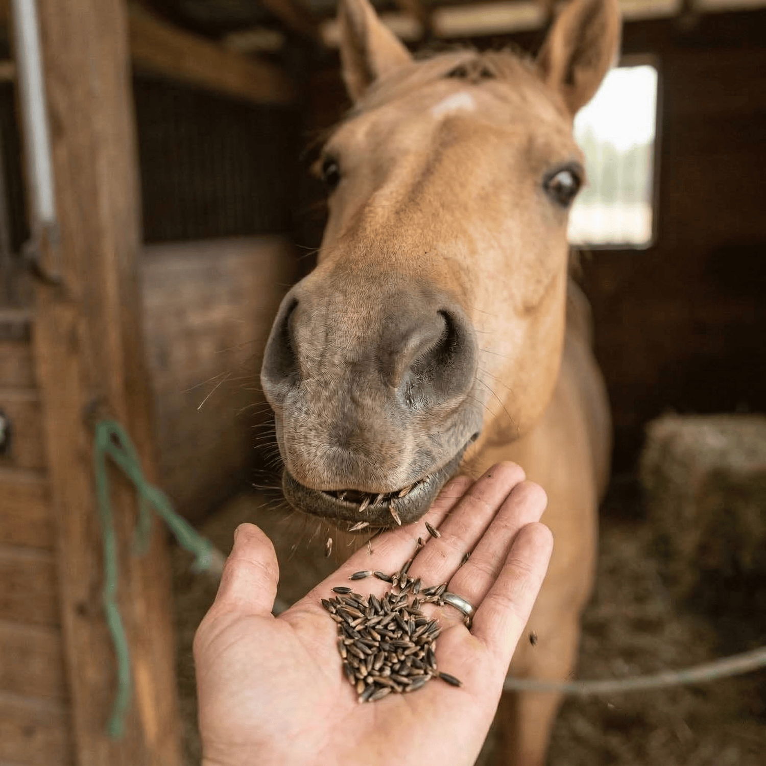 Das hängt von der Tierart ab. Hühner fressen das ganze Korn problemlos, bei Pferden (insbesondere älteren Tieren oder Schlingern) kann ein vorheriges Quetschen die Verdaulichkeit erhöhen. Bitte beachte, dass gequetschter Hafer schneller verdirbt und zügig verbraucht werden sollte.