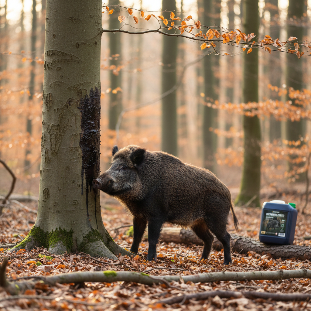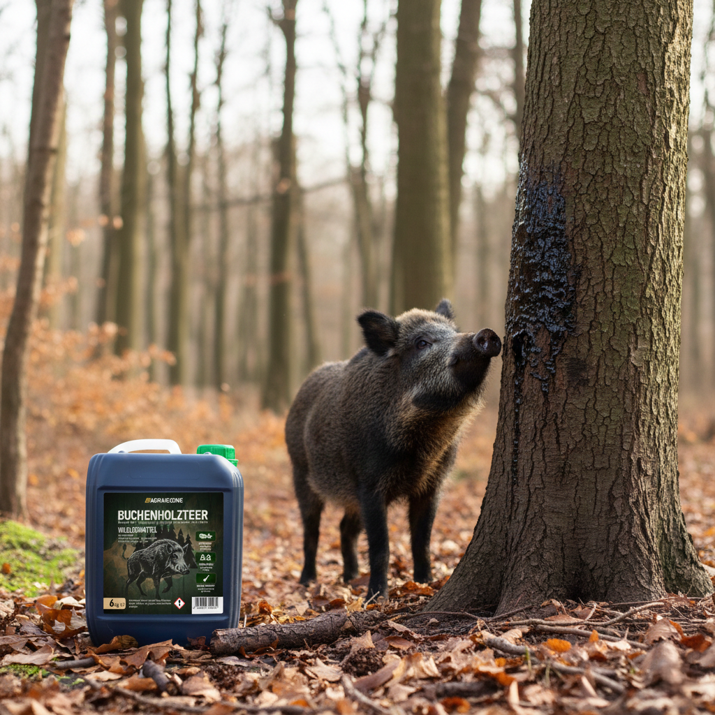Der Agrarzone Buchenholzteer ist ein reines Naturprodukt, frei von Zusätzen oder Pheromonen. Durch seine besondere Zusammensetzung zieht er Wildschweine und Rotwild zuverlässig über große Entfernungen an. Dank seiner mittleren Konsistenz lässt sich der Teer leicht verarbeiten und eignet sich ideal zum Auftragen auf Bäume oder Fütterungsstellen.
