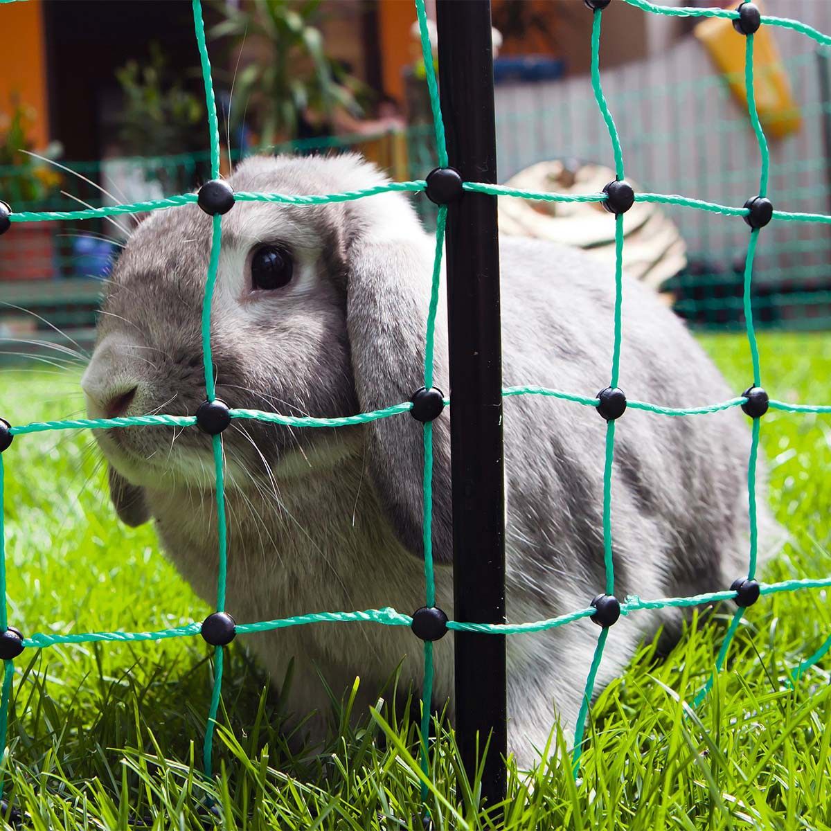 Mit dem Kaninchennetz verwahren Sie Ihre Nager sicher im Freien. Die besonders kleine Maschenweite von 5,9 cm gewährleistet höchste Hütesicherheit. Um dem Anknabbern des Netzes vorzubeugen oder die Kaninchen und Hasen zusätzlich vor Eindringlingen zu schützen, kann das Kaninchennetz optional auch mit Strom betrieben werden.