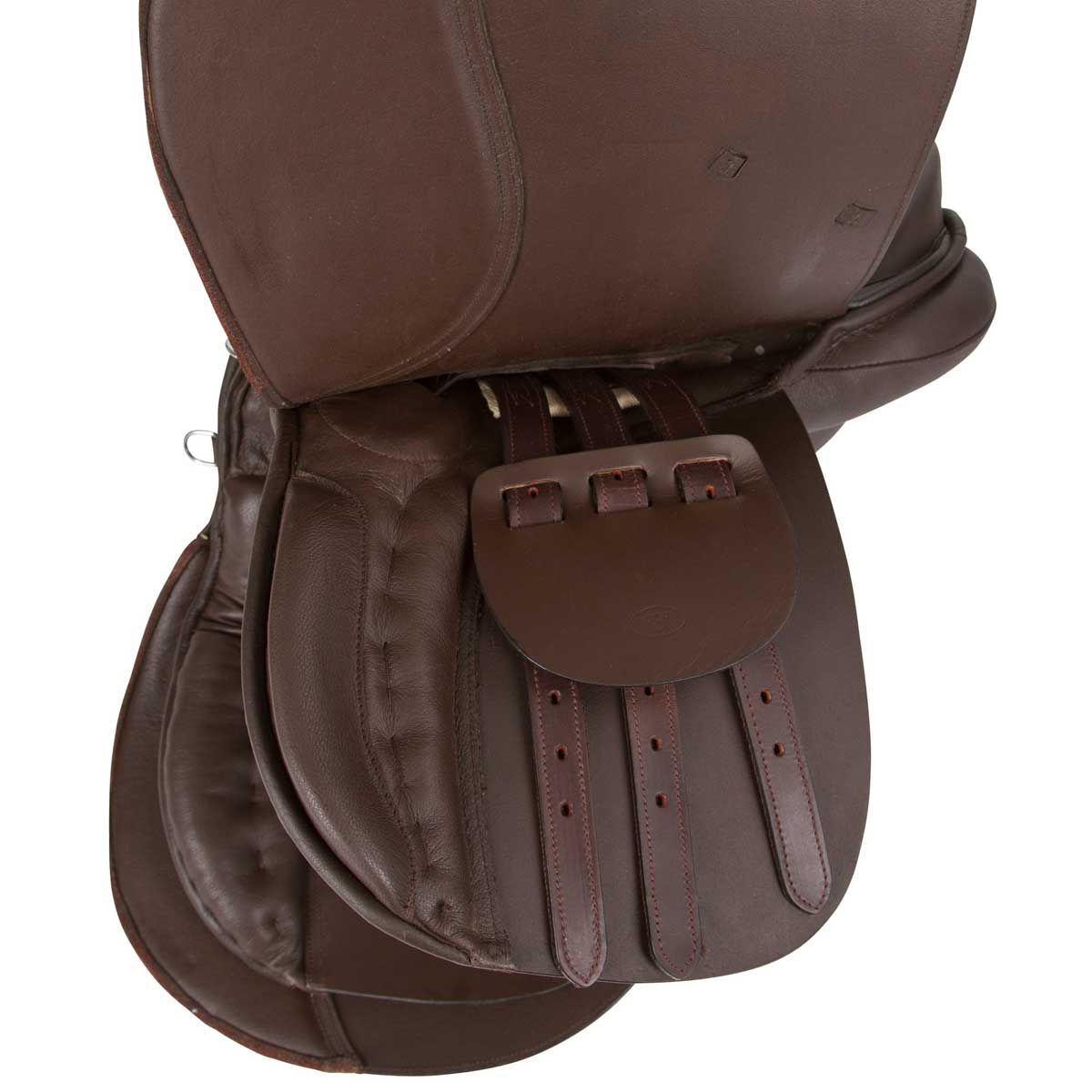 Das Sattelset ist in den Größen 16,0 Zoll und 17,5 Zoll erhältlich, passend für unterschiedliche Reiterbedürfnisse.
