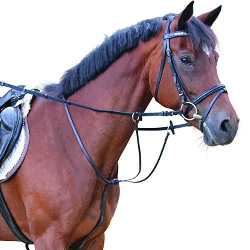 Dieser Hilfszügel aus hochwertigem Leder verhindert ein Kopfschlagen des Pferdes.